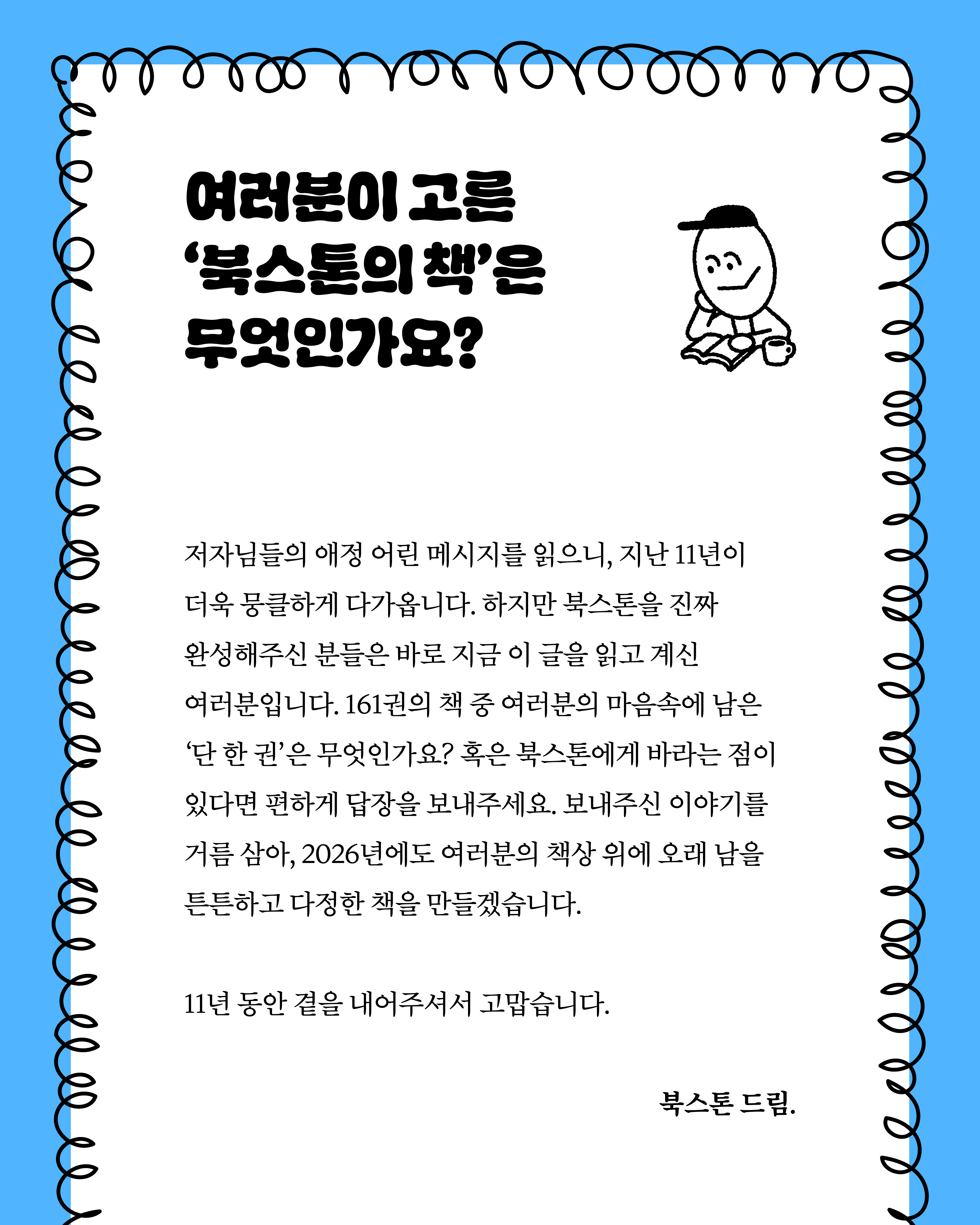 ✅ 1월 15일은 북스톤의 11주년이었습니다. 11년 동안 함께 걸어와주신 독자 여러분께 감사의 인사를 전합니다. 앞으로도 잘 부탁드립니다!